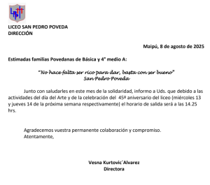 Liceo con excelencia académica, valórica y deportiva 2 2531 3572 – 2 2532 2308 contacto@liceopedropoveda.cl